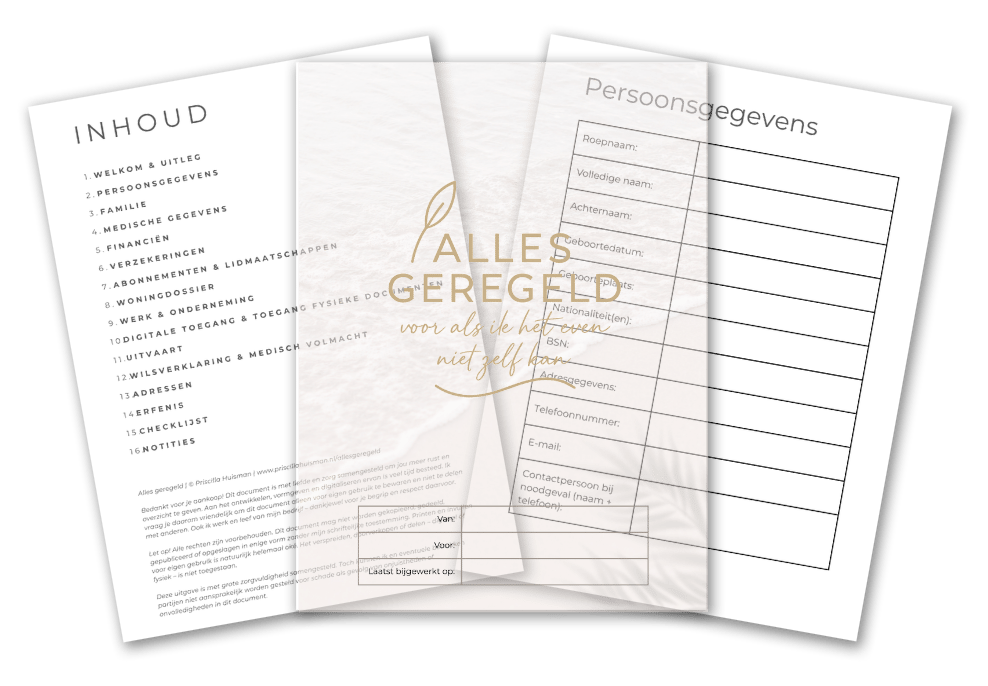 Inbox en agenda beheerd, tijd geblokkeerd en voorbereidingen gepland zodat jij ongestoord kunt werken. Zelf je basis vastleggen? Download het template Alles Geregeld.